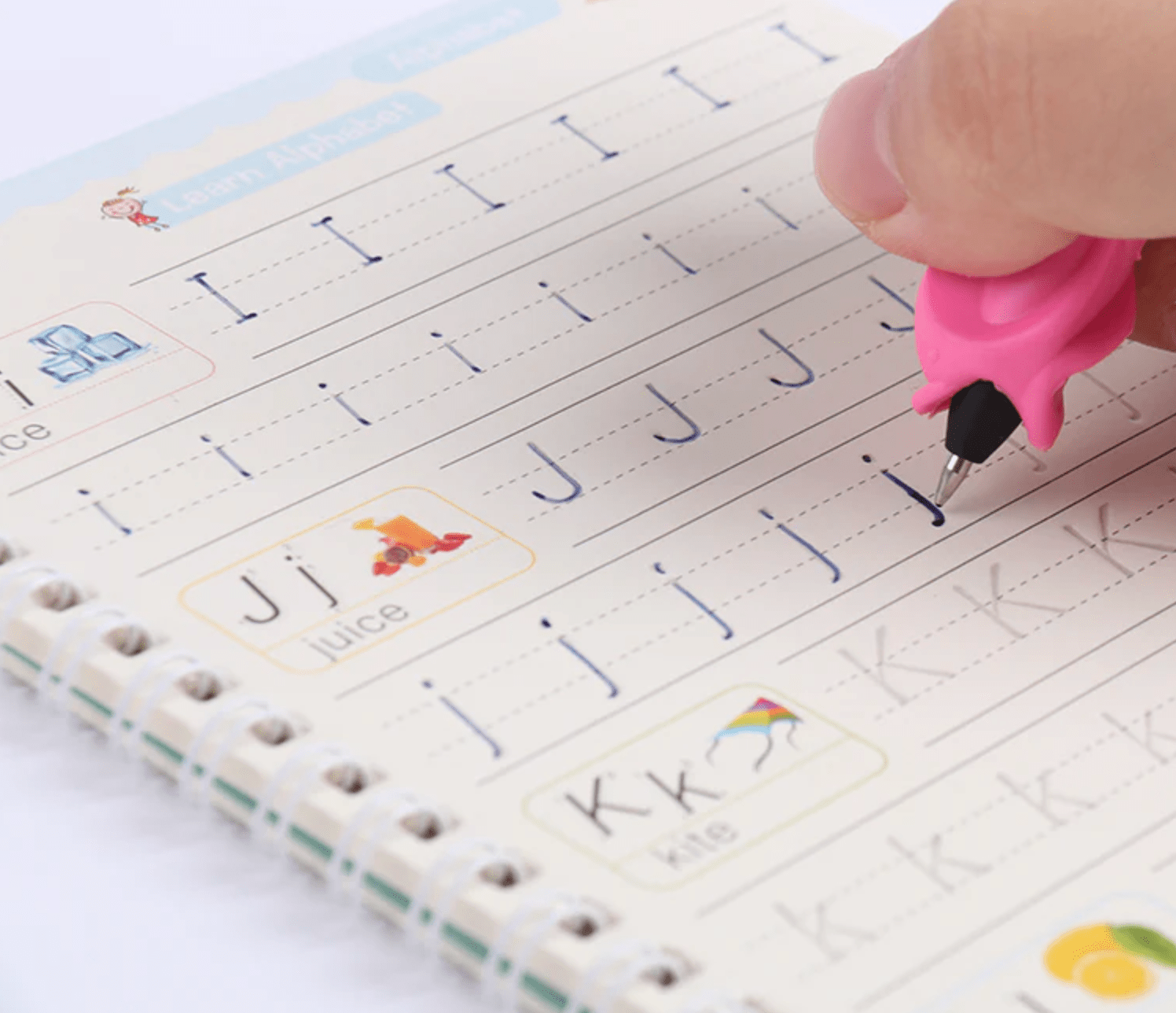 With each copybook, we offer you a set of pencil grip set. The handwriting will disappear within 15 minutes after writing, so the copybook can be reused. There are 1 pen holder and 5 pen cores, and the children can practice for a long time.